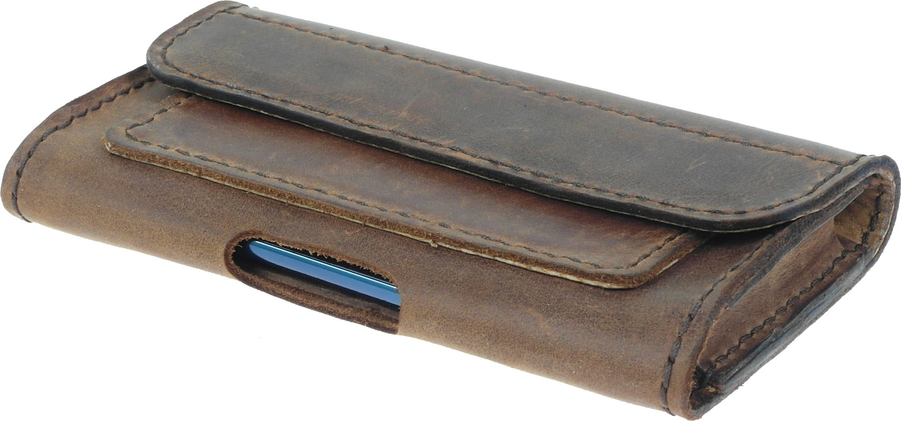 Pozioma kabura do telefonu została wykonana ze skóry naturalnej garbowanej w stylu vintage