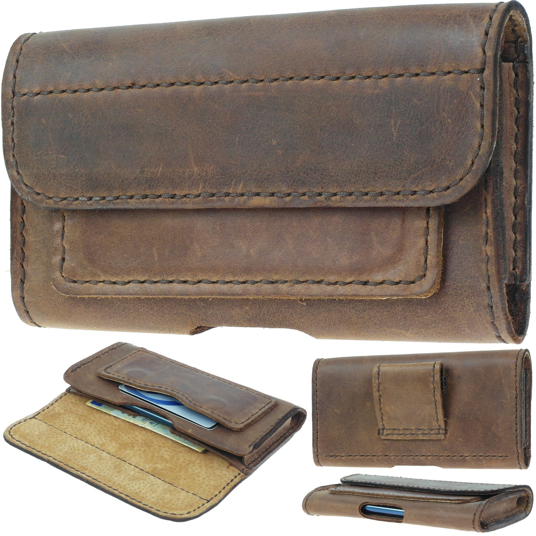 Pozioma kabura do telefonu została wykonana ze skóry naturalnej garbowanej w stylu vintage