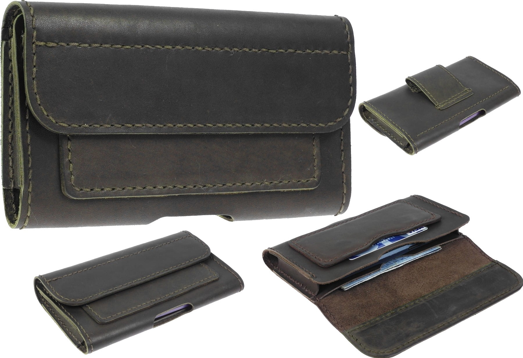 Pokrowiec na telefon z kieszonką na karty oraz wewnętrzną kieszenią na dokumenty i banknoty, wyprodukowany w Polsce z najwyższej jakości naturalnej skóry bydlęcej