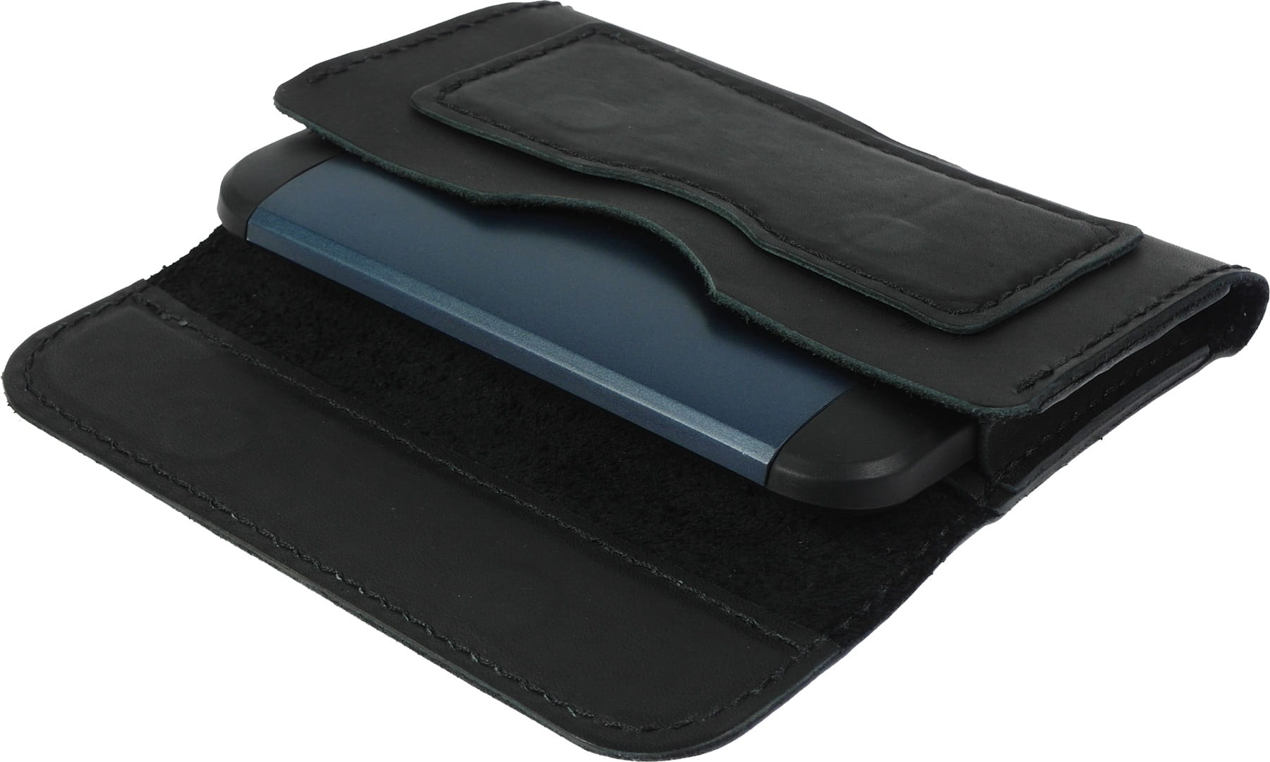 Pokrowiec na telefon z kieszonką na karty oraz wewnętrzną kieszenią na dokumenty i banknoty, wyprodukowany w Polsce z najwyższej jakości naturalnej skóry bydlęcej