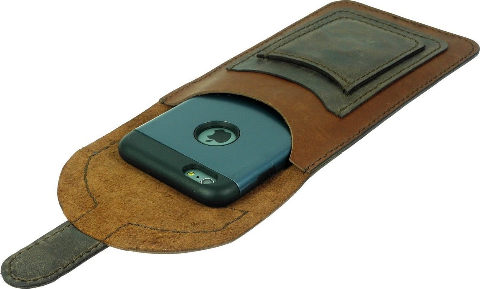 Ręcznie szyta kabura do telefonów z 2 kieszonkami na karty i dokumenty lub banknoty, wyprodukowana w Polsce z najwyższej jakości naturalnej skóry bydlęcej
