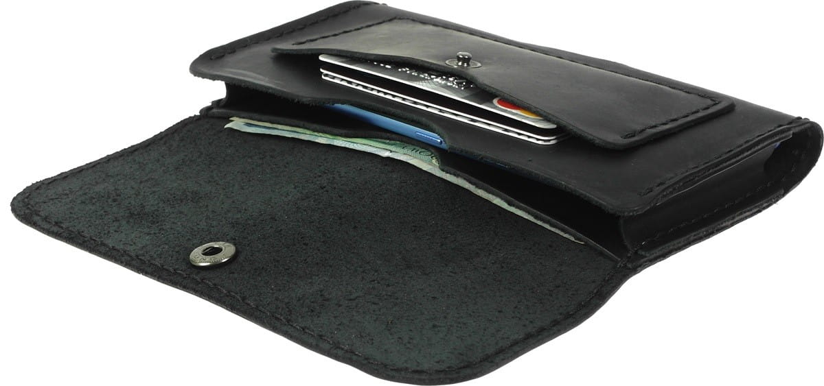 Ręcznie szyta skórzana kabura do telefonu z kieszonką na karty oraz wewnętrzną kieszenią na dokumenty i banknoty, wyprodukowana w Polsce z najwyższej jakości naturalnej skóry bydlęcej