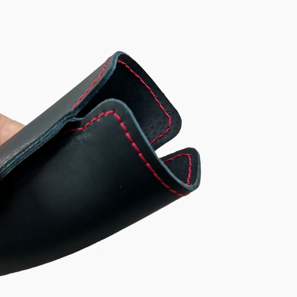 Każda skóra bydlęca ma przeciętnie grubość 1.1 do 1.5 mm, skóra podszewkowa 0.7 do 0.8 mm. To się samo broni, tu nie ma ściemy i udawania, nie ma żadnych sztucznych usztywniaczy pomiędzy skórą a podszewką ( tak zwykle Ultraducenci ukrywają marną jakość skóry o grubości papieru gazetowego ). Wiesz co kupujesz i wiesz dokładnie co będziesz trzymał w dłoni – to nie będzie chiński śmieć, który skutecznie truje poprzez dotykanie, bo zawiera plastyfikatory i inne świństwa – ty będziesz trzymać w dłoni skórę naturalną
