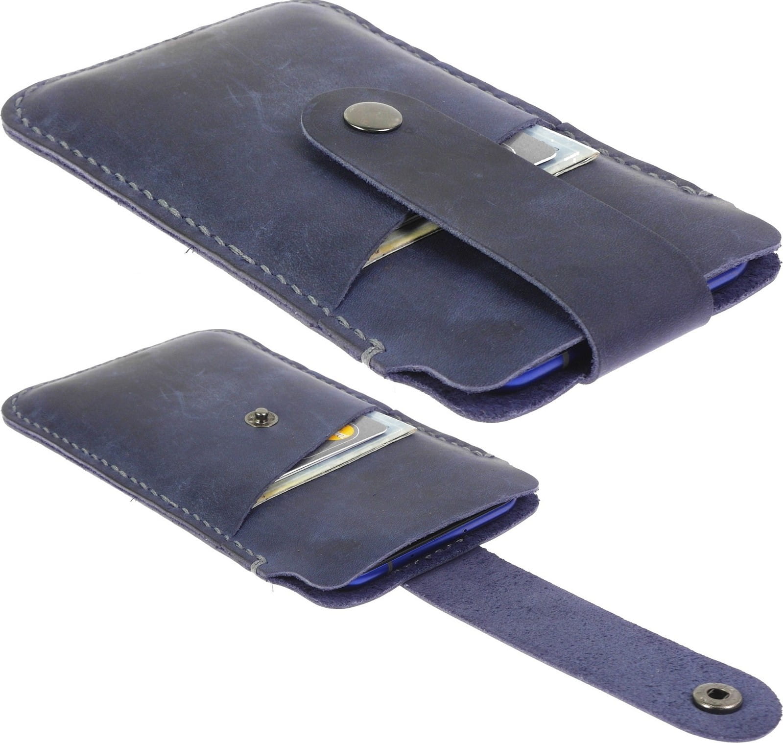 Pokrowiec Portfel Ręcznie Szyty Granatowy Z Kieszonką Do Telefonu OnePlus 8T