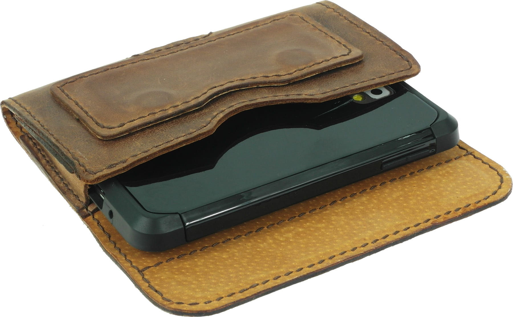 Pozioma kabura do telefonu Huawei P40 Pro została wykonana z naturalnej skóry bydlęcej garbowanej w stylu vintage