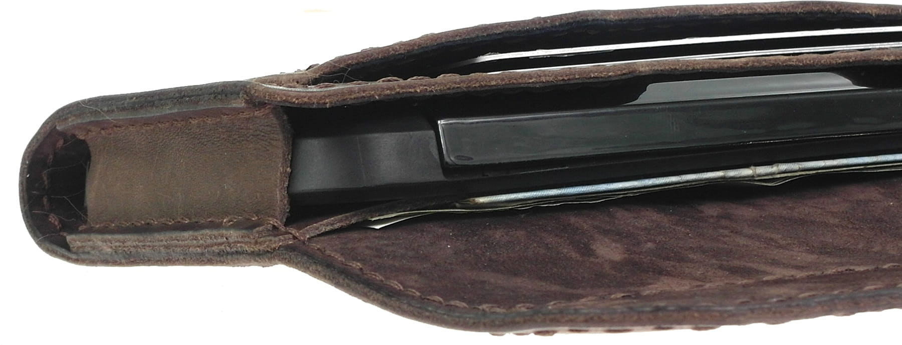 Pokrowiec na telefon z kieszonką na karty oraz wewnętrzną kieszenią na dokumenty i banknoty, wyprodukowany w Polsce z najwyższej jakości naturalnej skóry bydlęcej