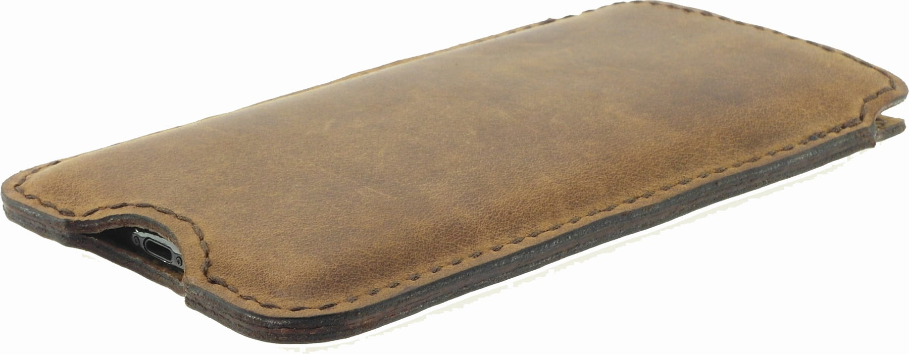 Etui wykonane jest w 100% ze skóry naturalnej, nie ma sztucznych dodatków, usztywnień, za to jest delikatna podszewka także ze skóry - z delikatnej dwoiny skórzanej. Tylko skóra i aż skóra, odpowiednio trwałaStandardowo ten skórzany pokrowiec na telefon jest szyty nicią o grubości 0.8 mm