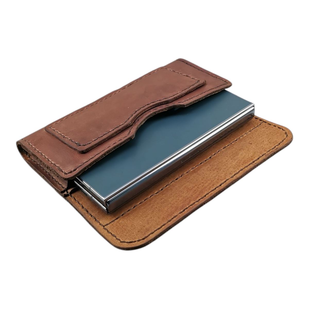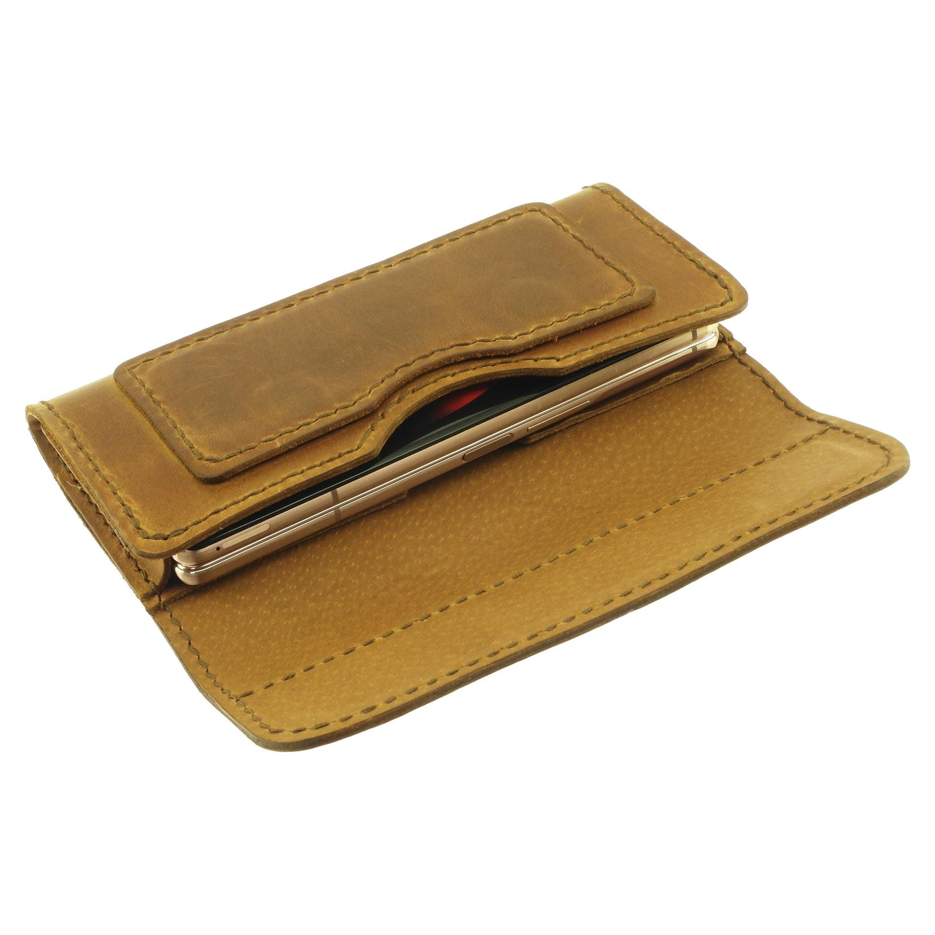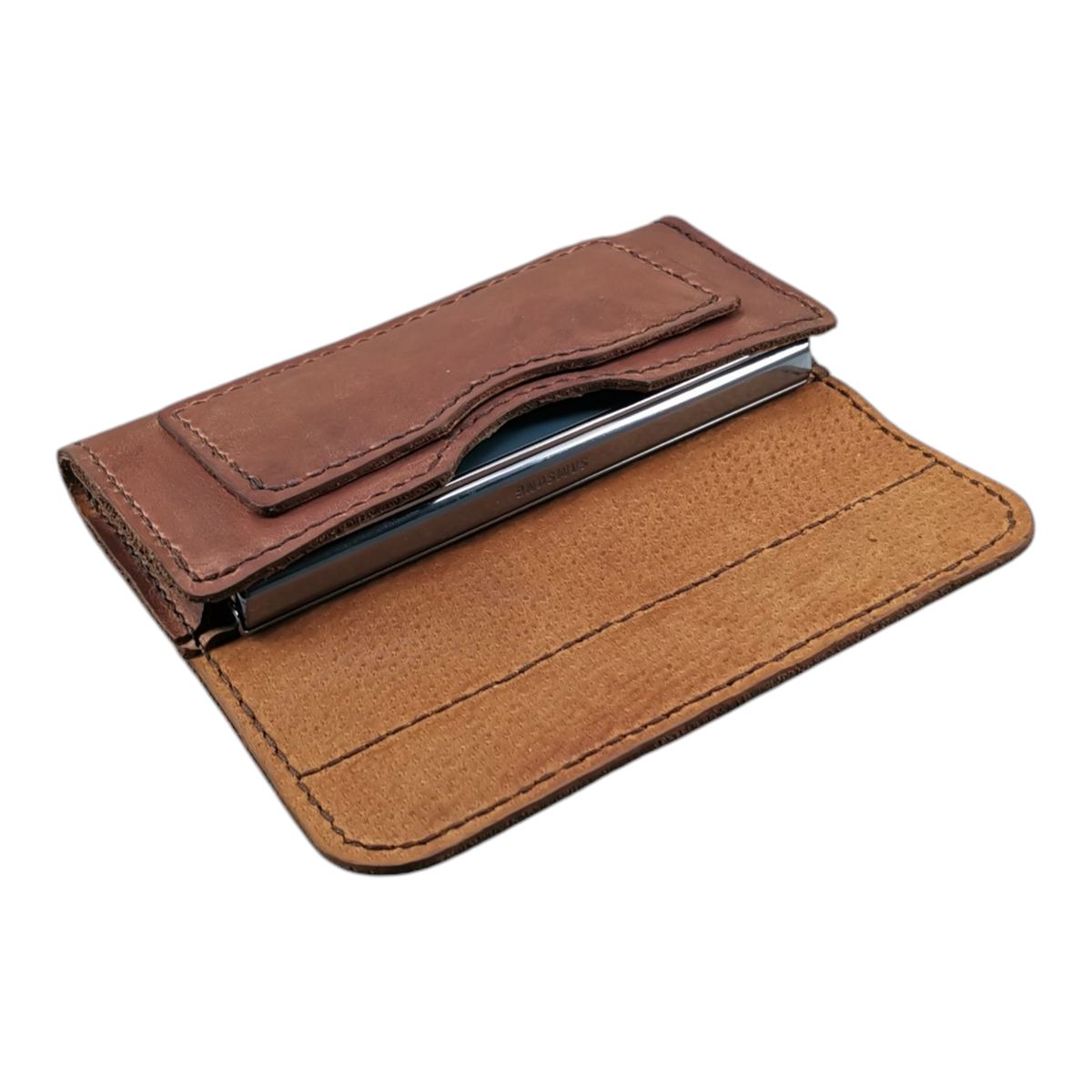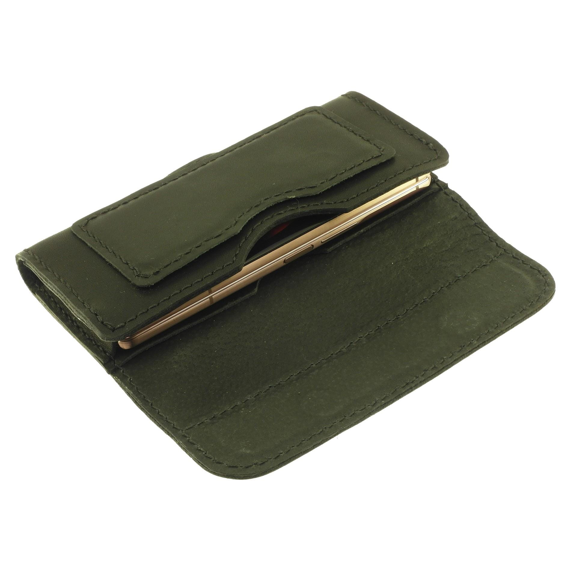 Pokrowiec na telefon z kieszonką na karty oraz wewnętrzną kieszenią na dokumenty i banknoty, wyprodukowany w Polsce z najwyższej jakości naturalnej skóry bydlęcej