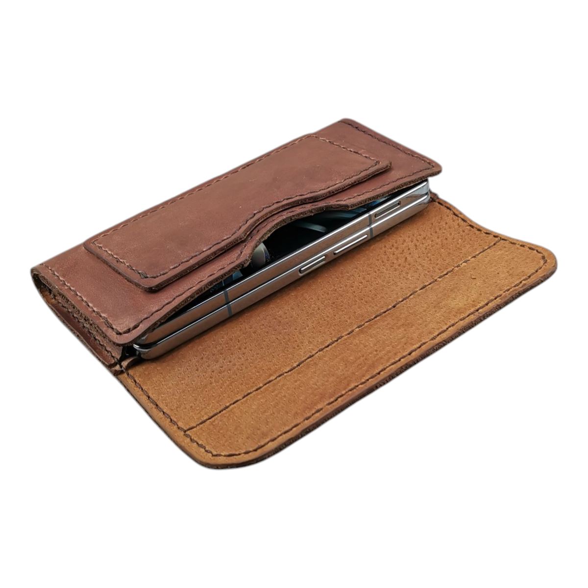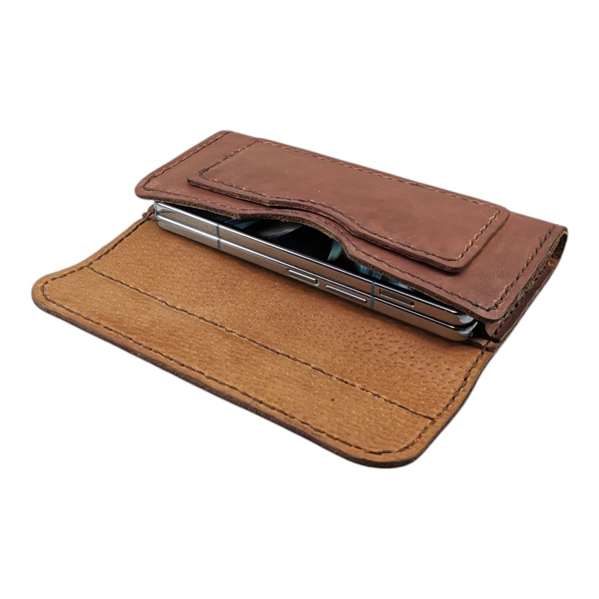 Pozioma kabura do telefonu Samsung Galaxy Z Fold3 5G została wykonana z naturalnej skóry bydlęcej garbowanej w stylu Vintage