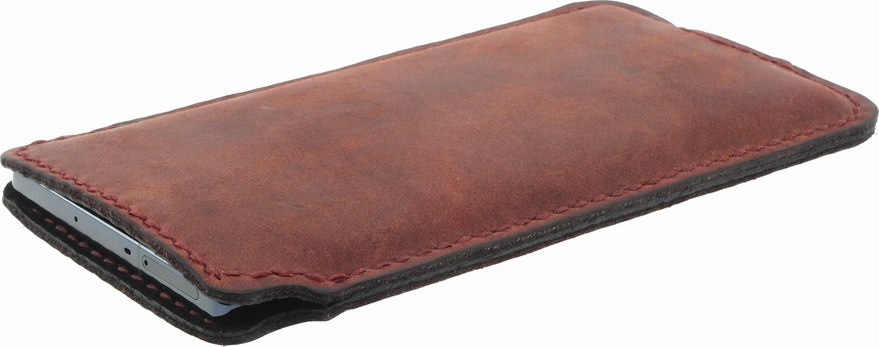 Etui wykonane jest w 100% ze skóry naturalnej, nie ma sztucznych dodatków, usztywnień, za to jest delikatna podszewka także ze skóry - z delikatnej dwoiny skórzanej. Tylko skóra i aż skóra, odpowiednio trwałaStandardowo ten skórzany pokrowiec na telefon jest szyty nicią o grubości 0.8 mm