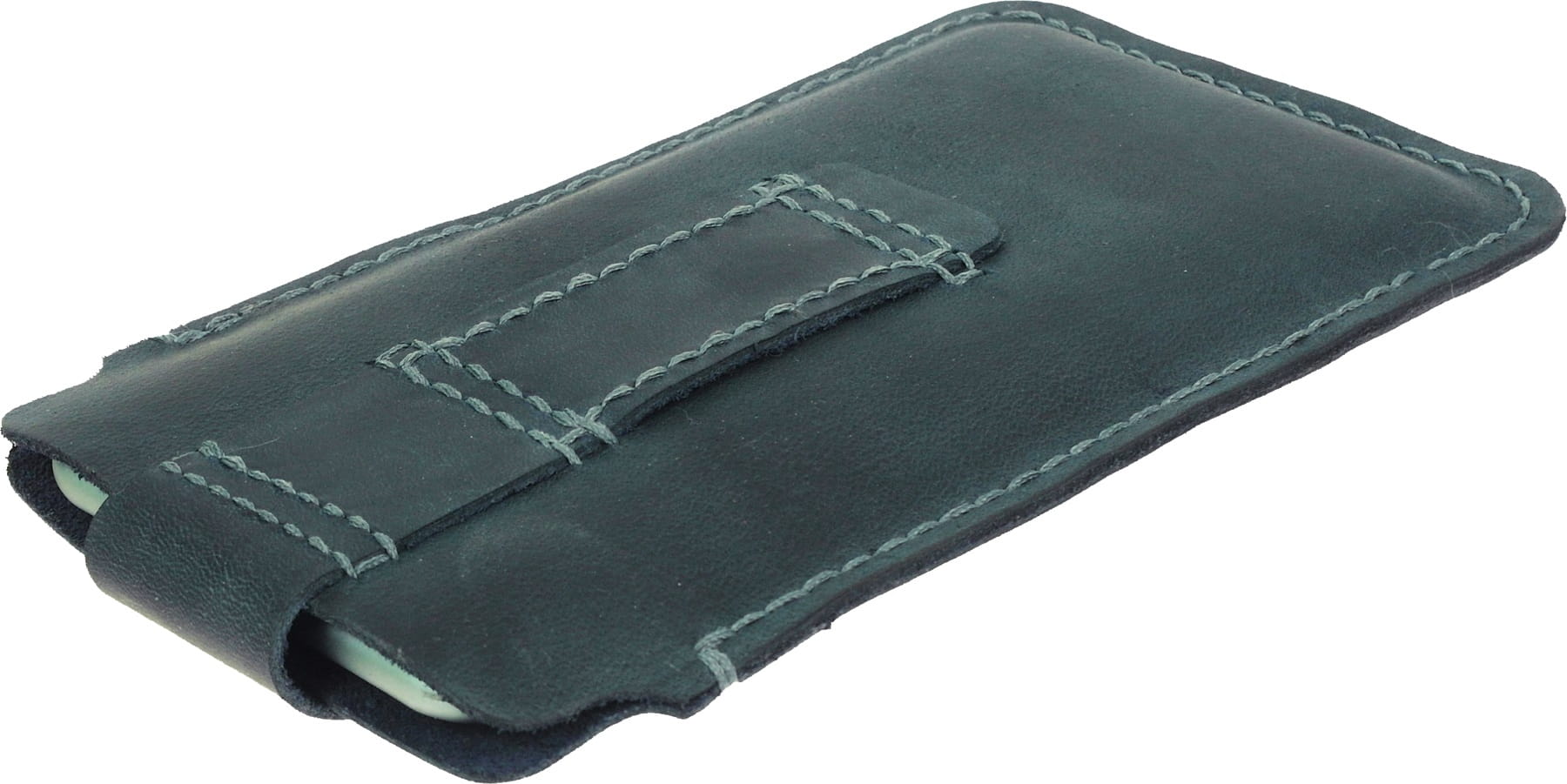 Ręcznie szyte skórzane etui do telefonu z kieszonką i z mocowaniem na pasek spodni