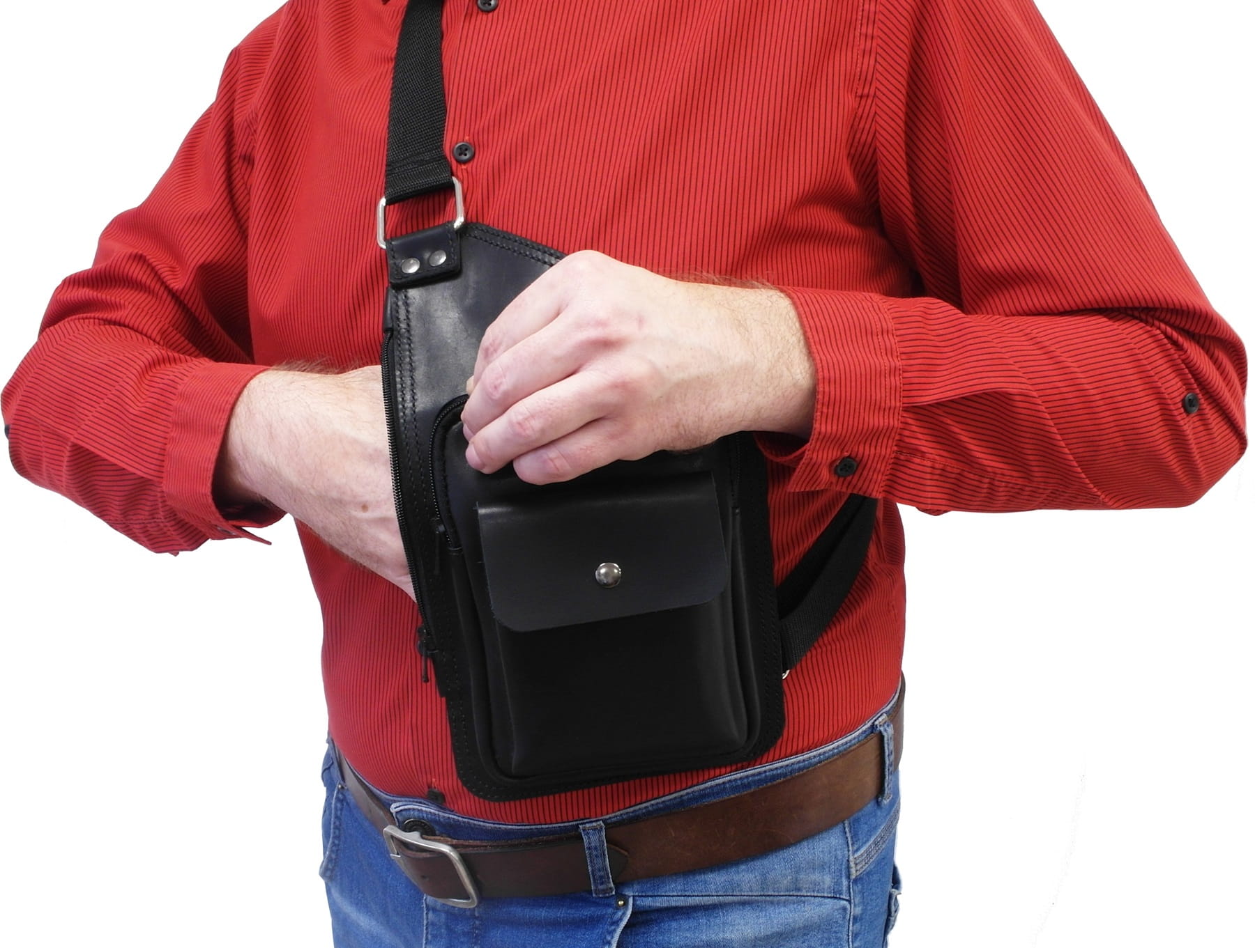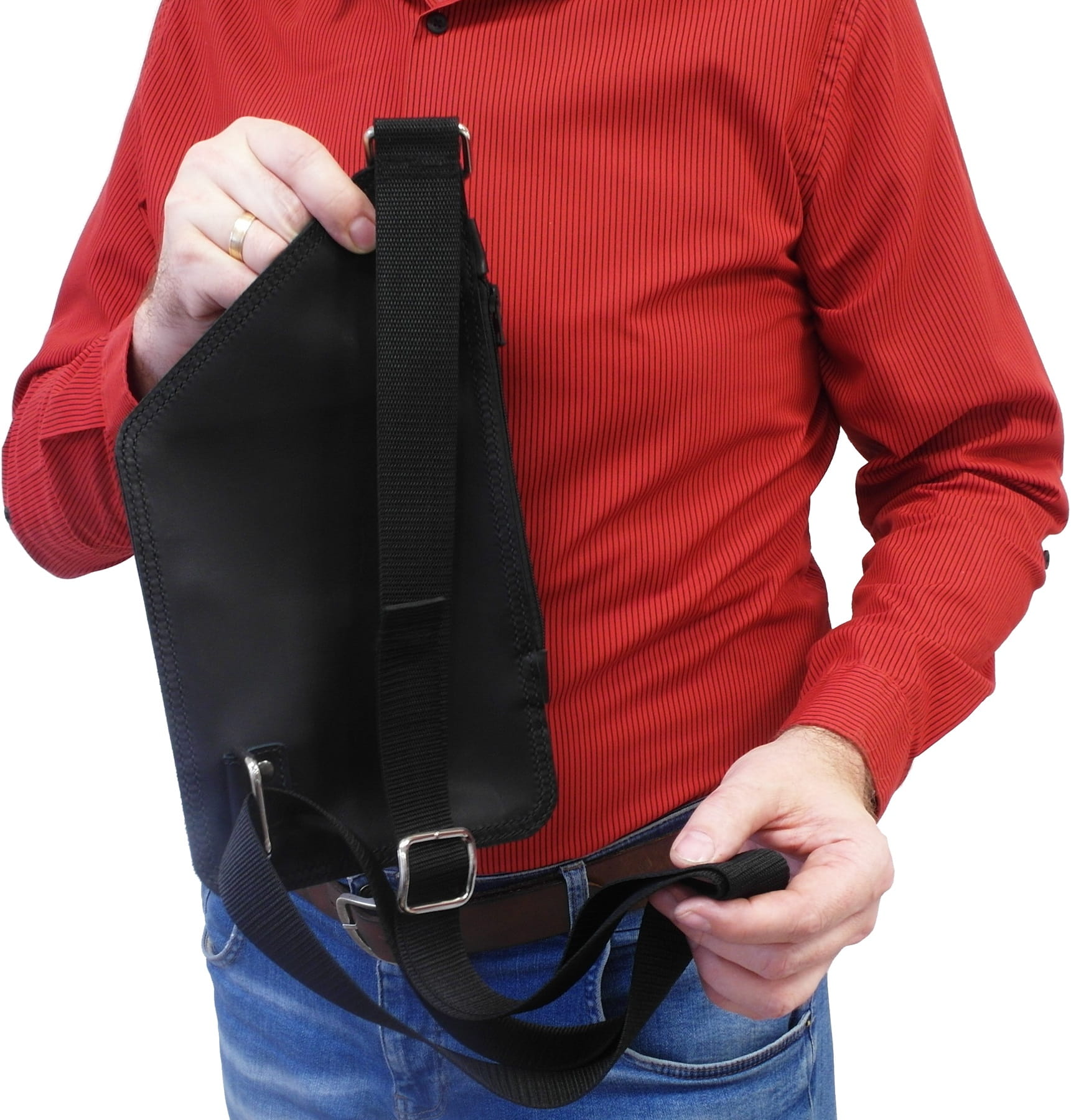Możemy także na zamówienie uszyć tę torbę z dodatkowym mocowaniem do paska spodni wraz z paskiem okalającym udo