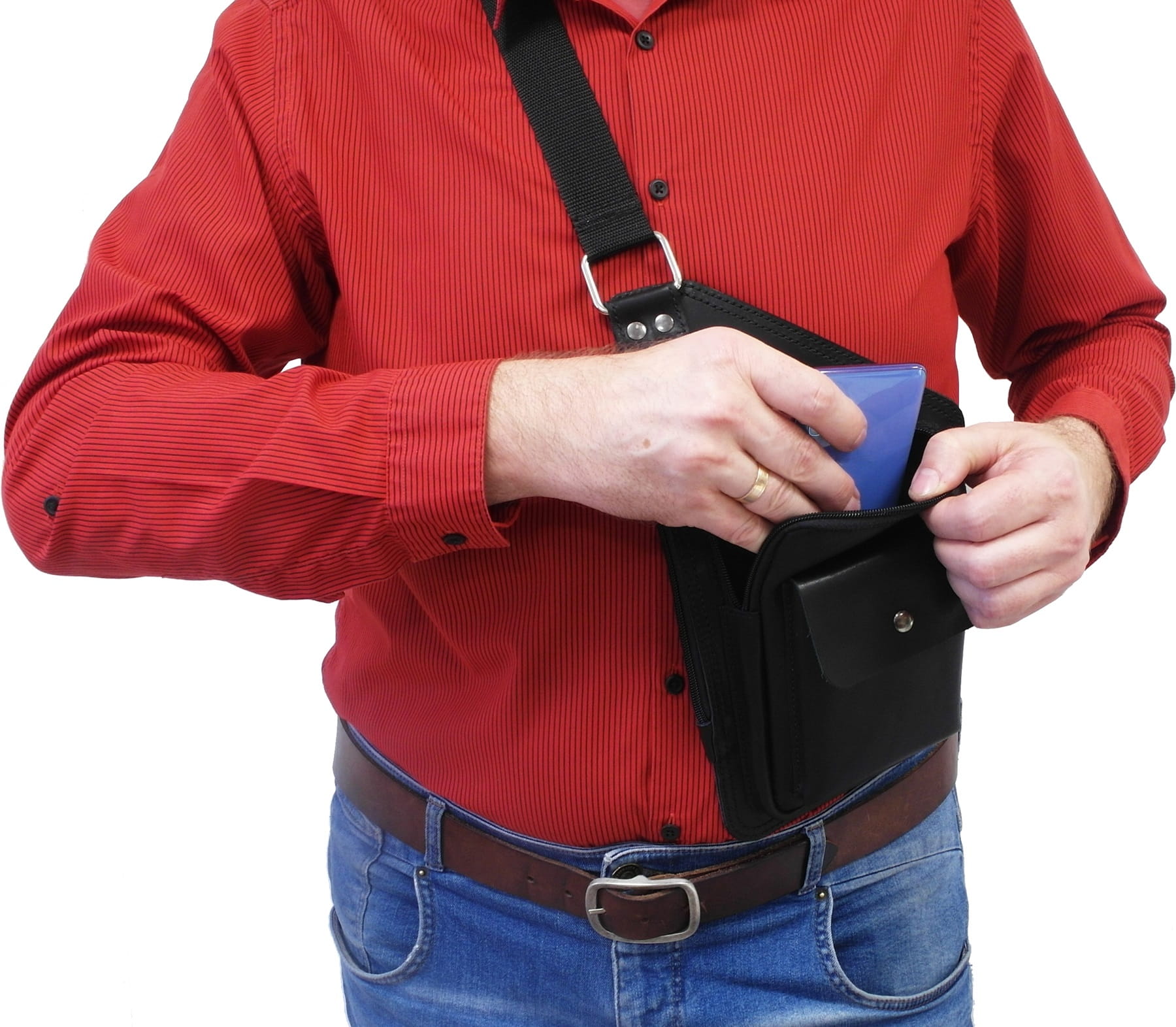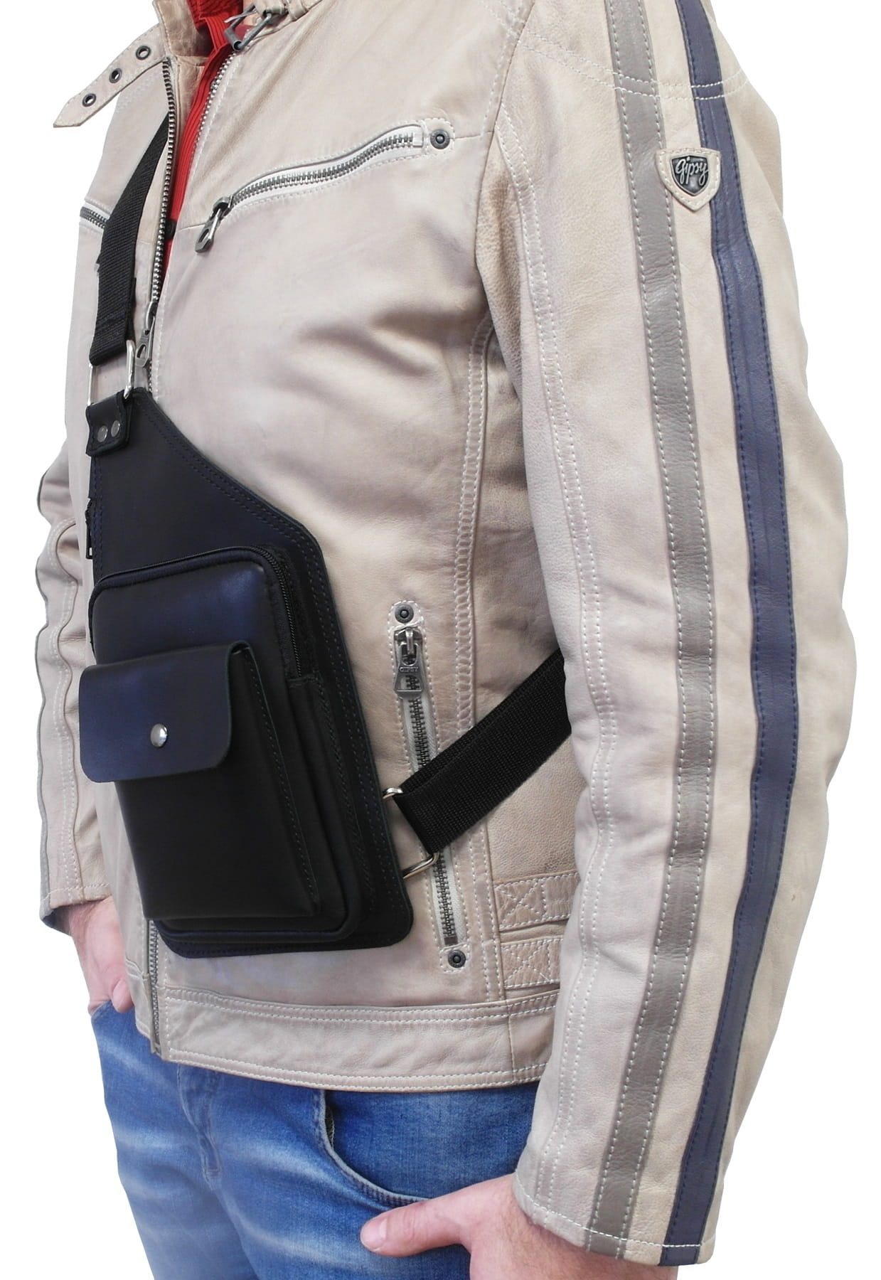Torbę tę, czy inaczej mówiąc saszetkę można nosić wygodnie na różne sposoby