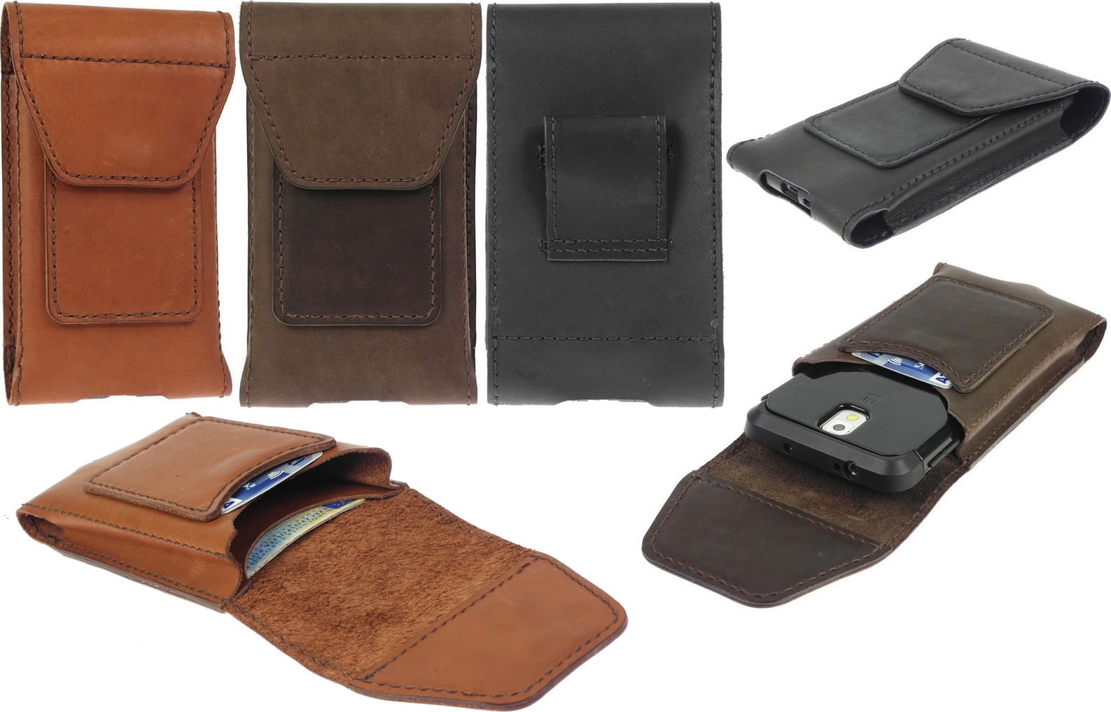 W tej skórzanej kaburze można z powodzeniem zmieścić sam telefon lub telefon „ubrany” w dodatkowe etui ochronne, tzw. „plecki”, nawet grube i obszerne jak np. wielowarstwowe nakładki ochronne typu UAG, Otterbox Commuter, Otterbox Defender, Otterbox Symetry, Spigen Tough Armor, Case-Mate Tough Case, Case-Mate Pop! Stand Case, Nillkin Defender, Mophie i inne podobne pancerne ochraniacze.
