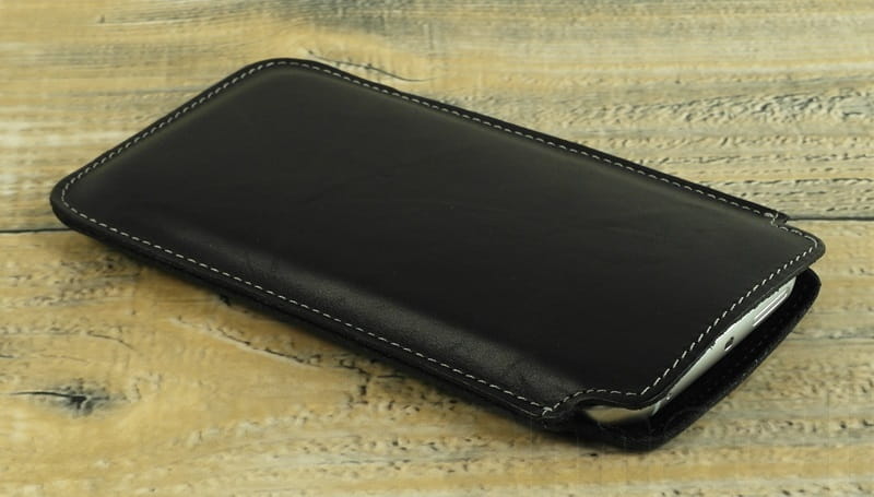 - Skóra jest miękka, przyjemna w dotyku. Wewnątrz podklejona delikatnym, czarnym welurem chroniącym telefon przed zadrapaniami.