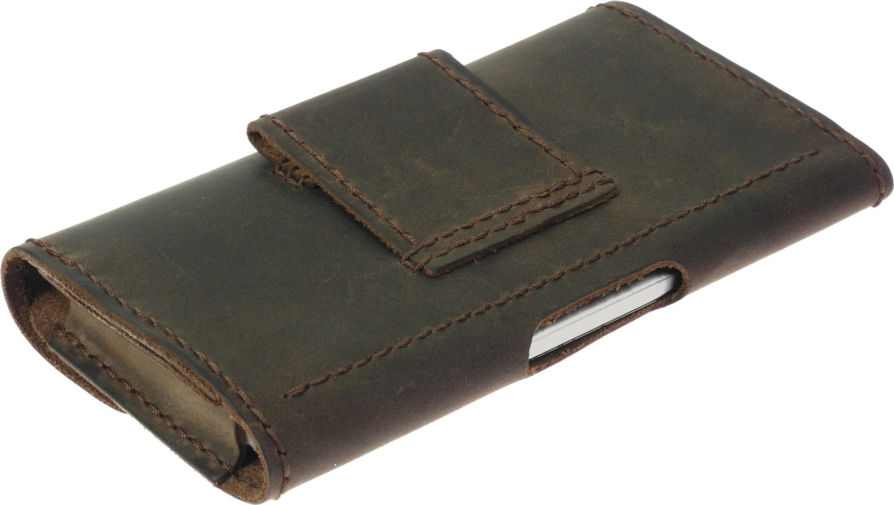 Ręcznie szyta kabura do telefonu z kieszonką na karty oraz wewnętrzną kieszenią na dokumenty i banknoty, wyprodukowana w Polsce z najwyższej jakości naturalnej skóry bydlęcej.