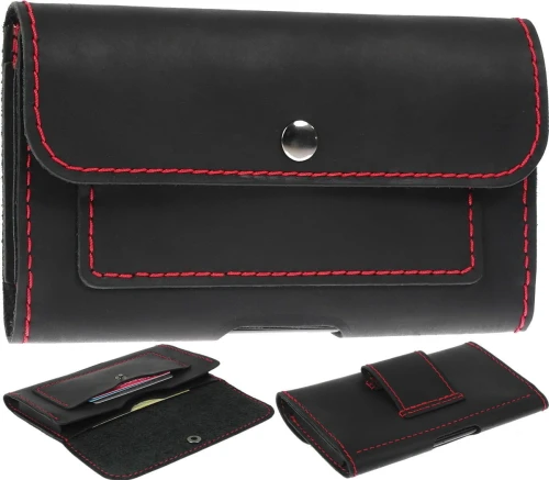 Kabura Ręcznie Szyta Czarna Z Czerwoną Nicią - 2 Kieszonki - Do Telefonu BlackBerry Motion
