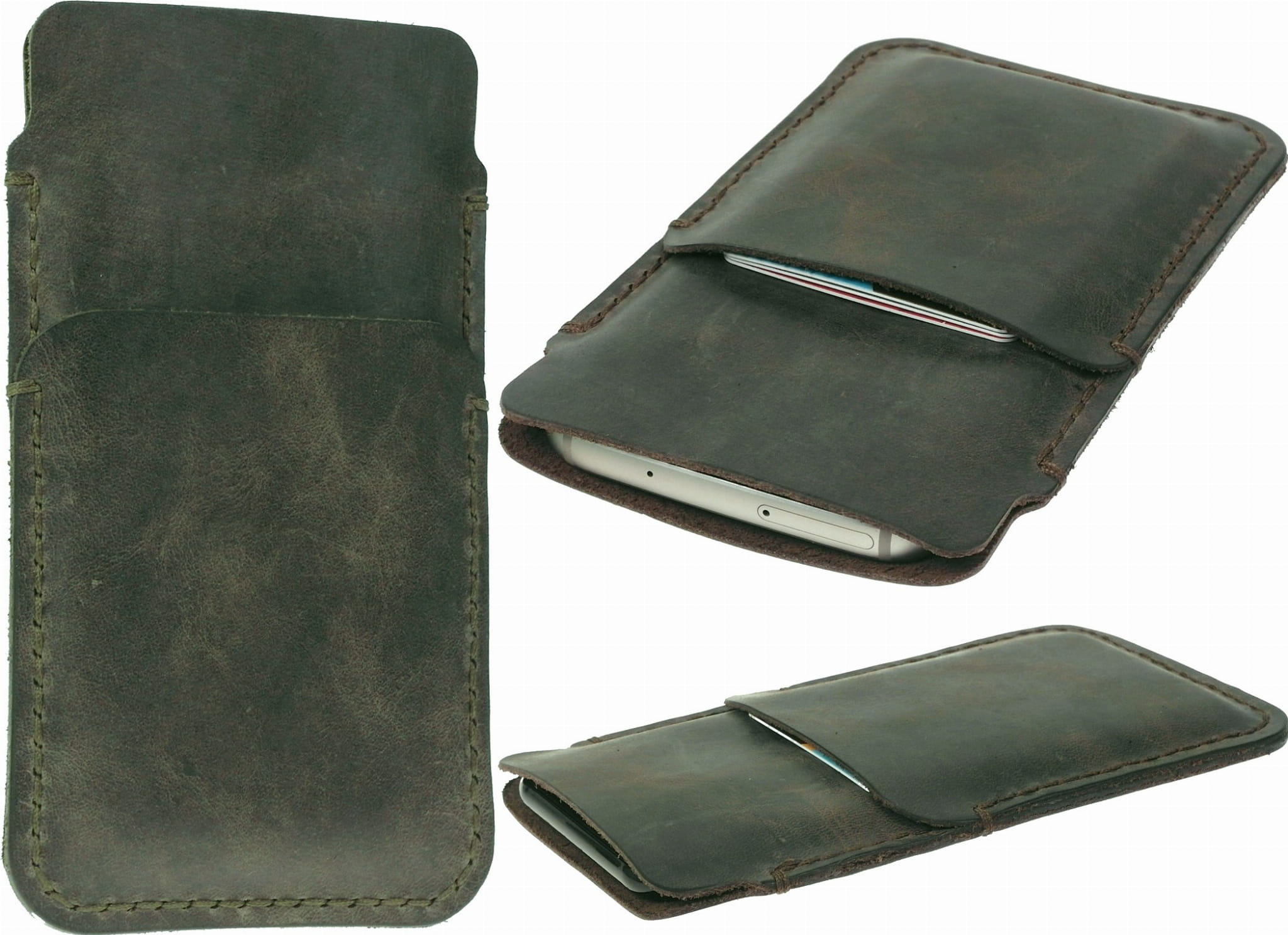 Ręcznie szyte etui do telefonów komórkowych, z kieszonką na karty, wyprodukowane w Polsce z najwyższej jakości naturalnej skóry bydlęcej.